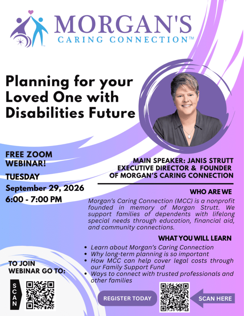 This educational webinar is presented by Janis Strutt, Executive Director & Founder of Morgan’s Caring Connection (MCC). MCC is a nonprofit founded in memory of Morgan Strutt, dedicated to supporting families through education, financial aid, and community connections.
