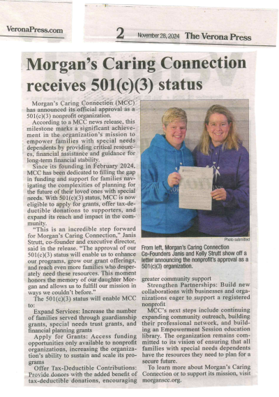 Verona Press – 501(c)(3) status update